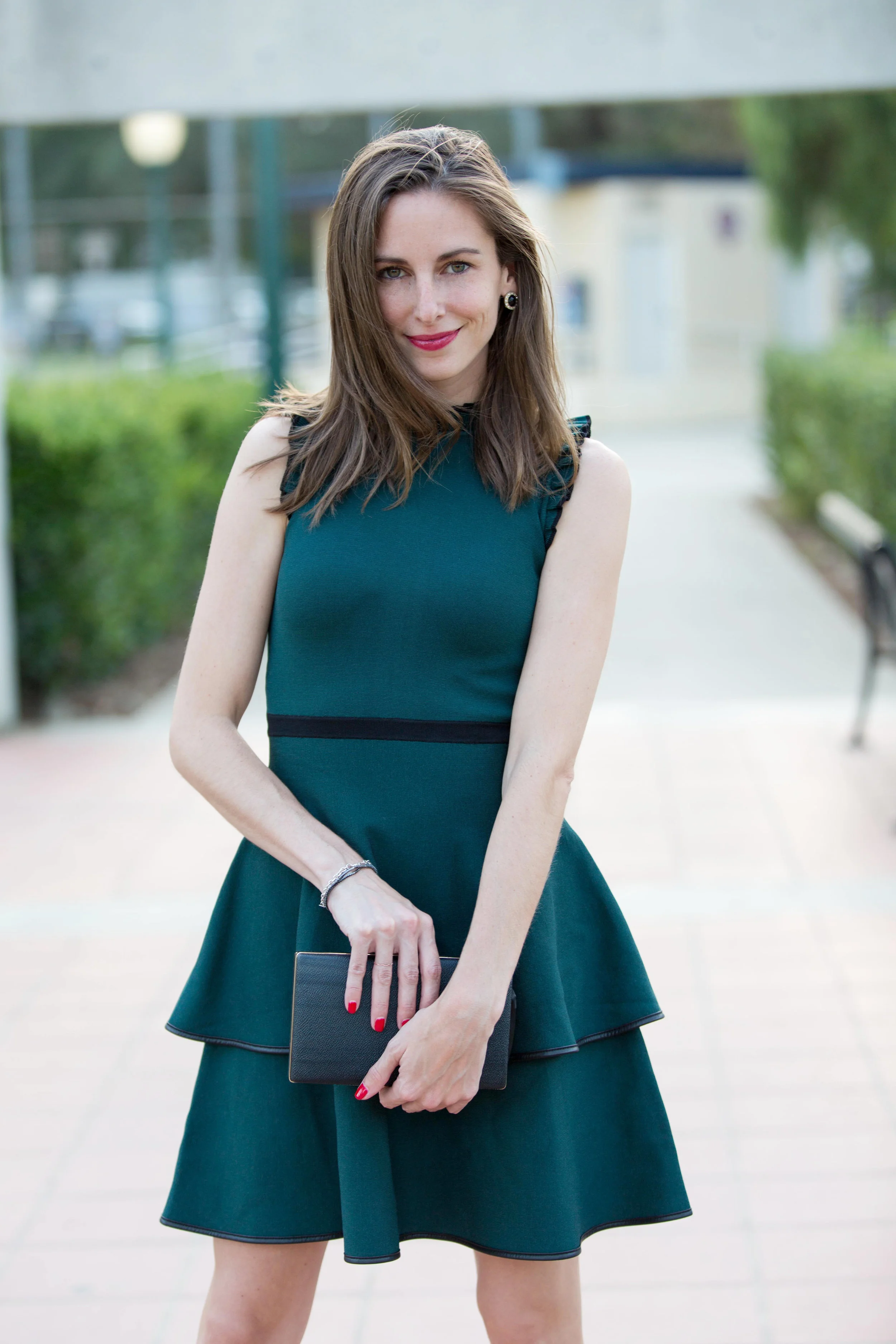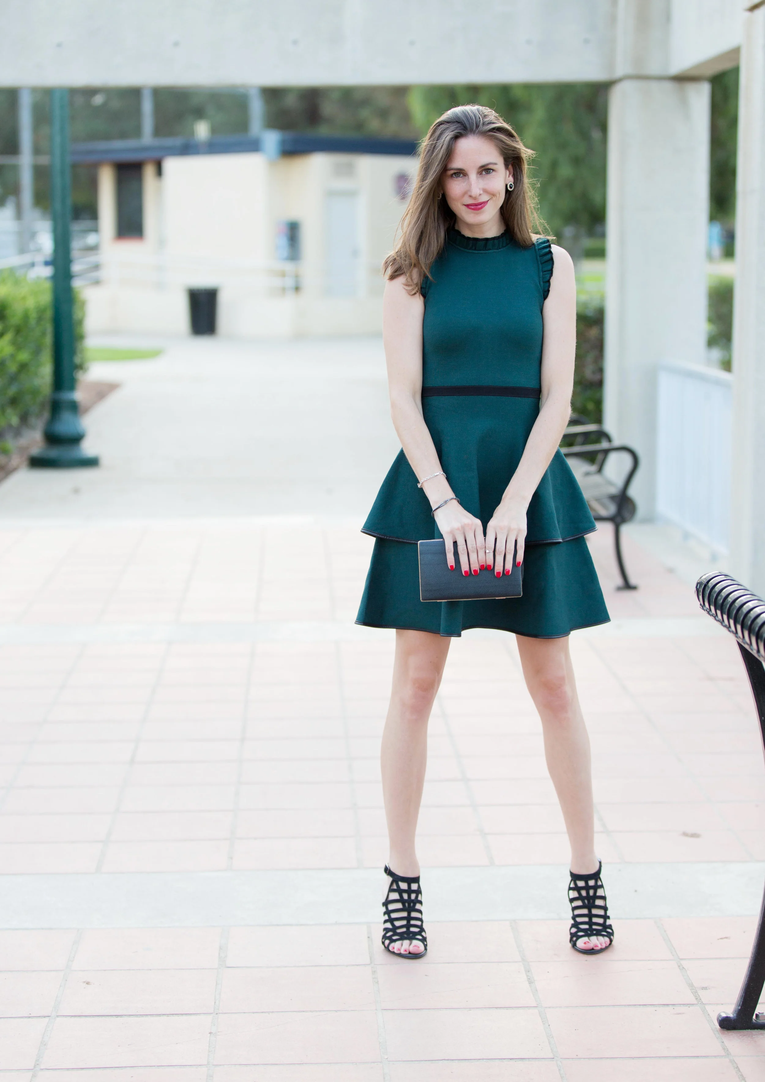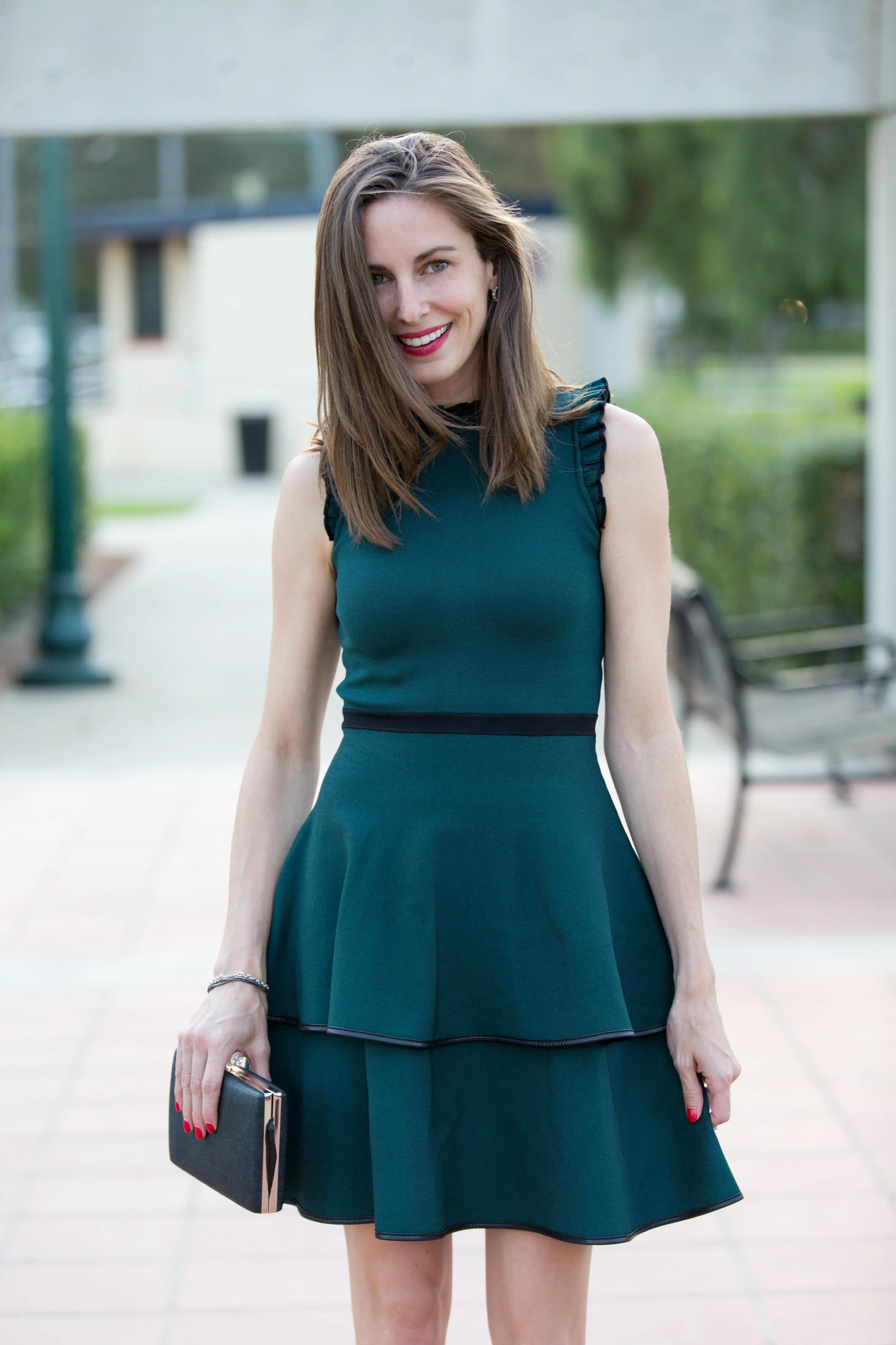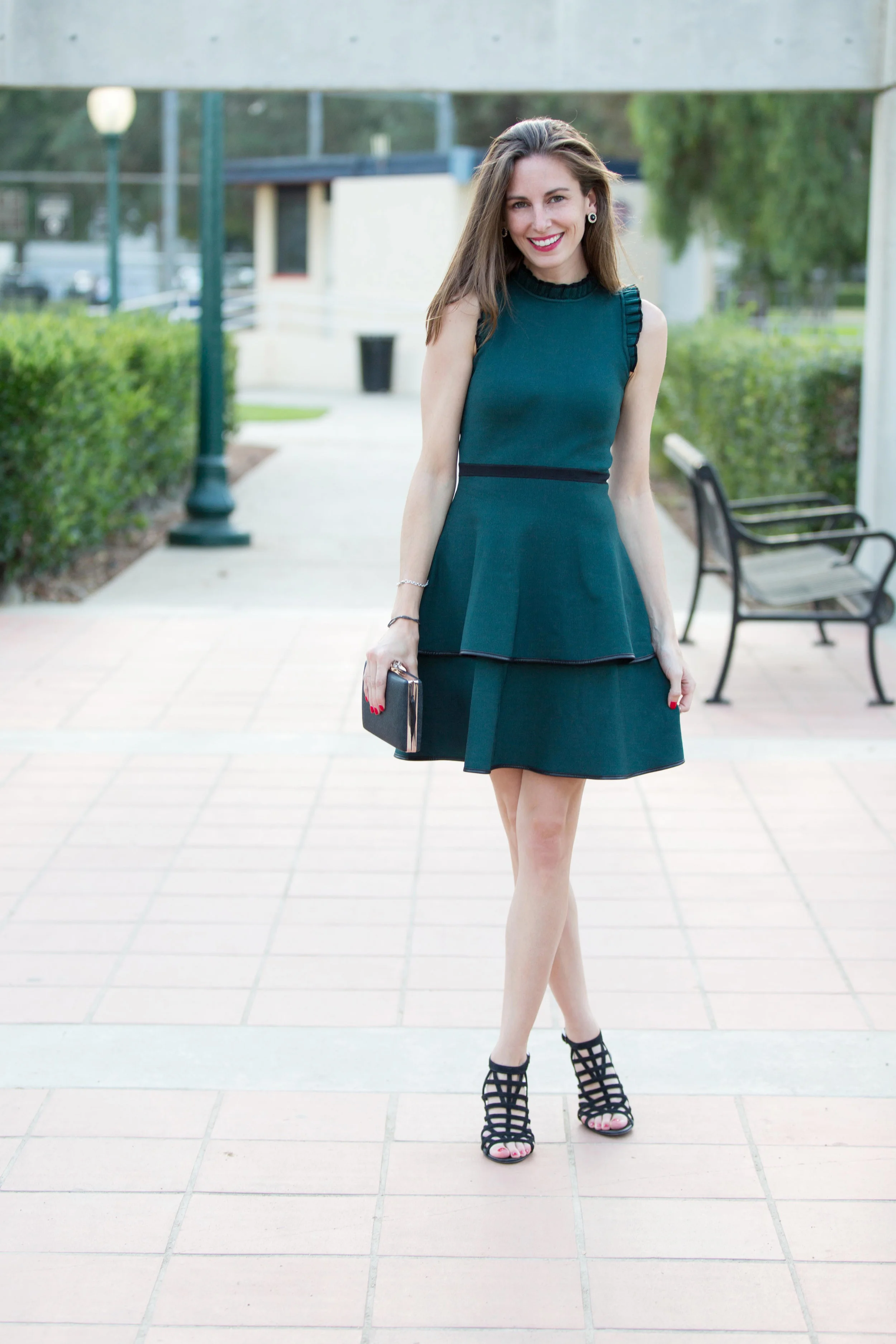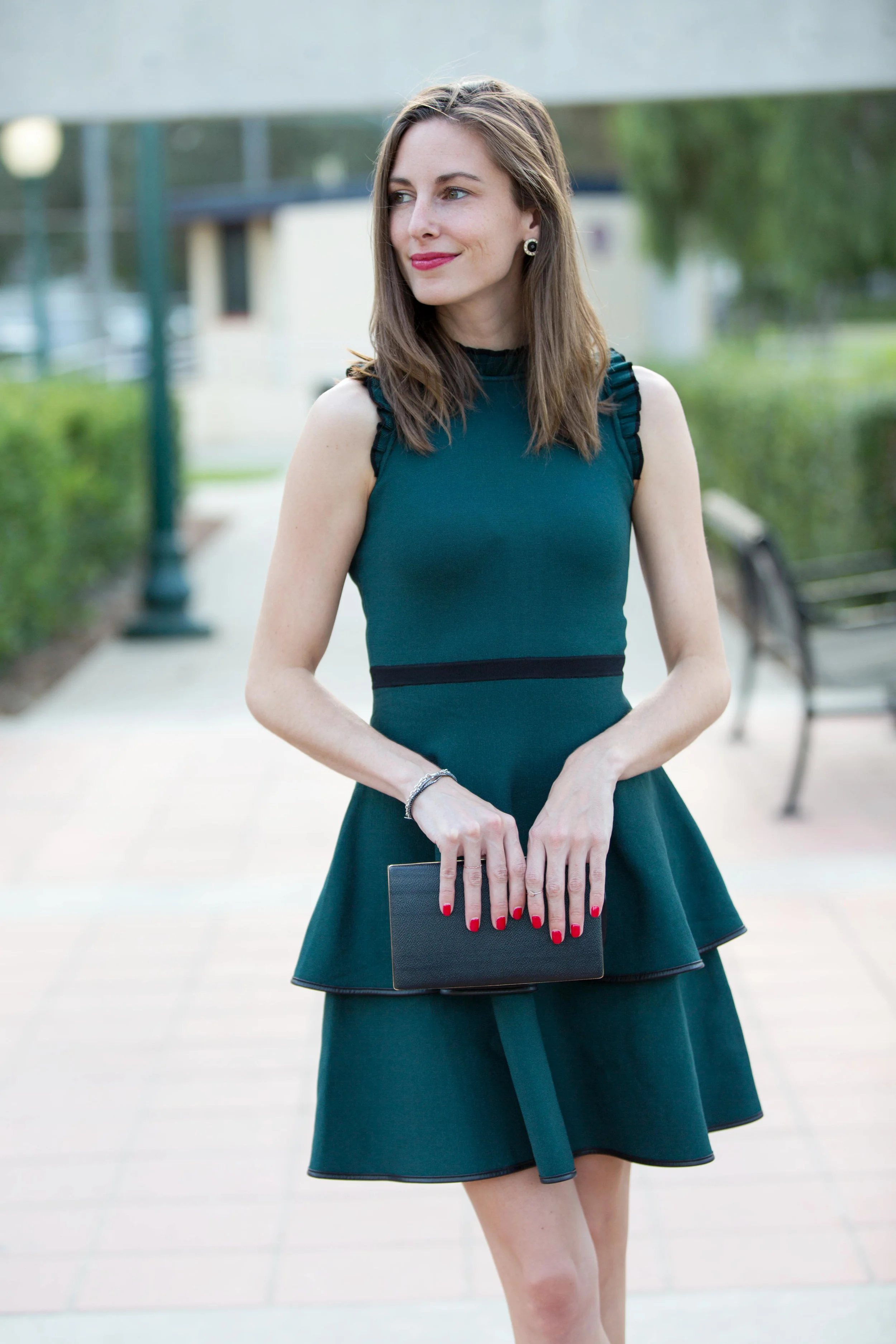 This dress may be the only dress you need for your next big night (or day) out. Made for special occasions, I wore it last week to a fancy work event in Beverly Hills. I love everything about it. The double layer design, the ruffled neckline, the thick sweatery texture, the girly silhouette, the rich green color. It's feminine, it's flirty, it's something I like to imagine Audrey Hepburn might wear... need I go on about why it's just so lovely?