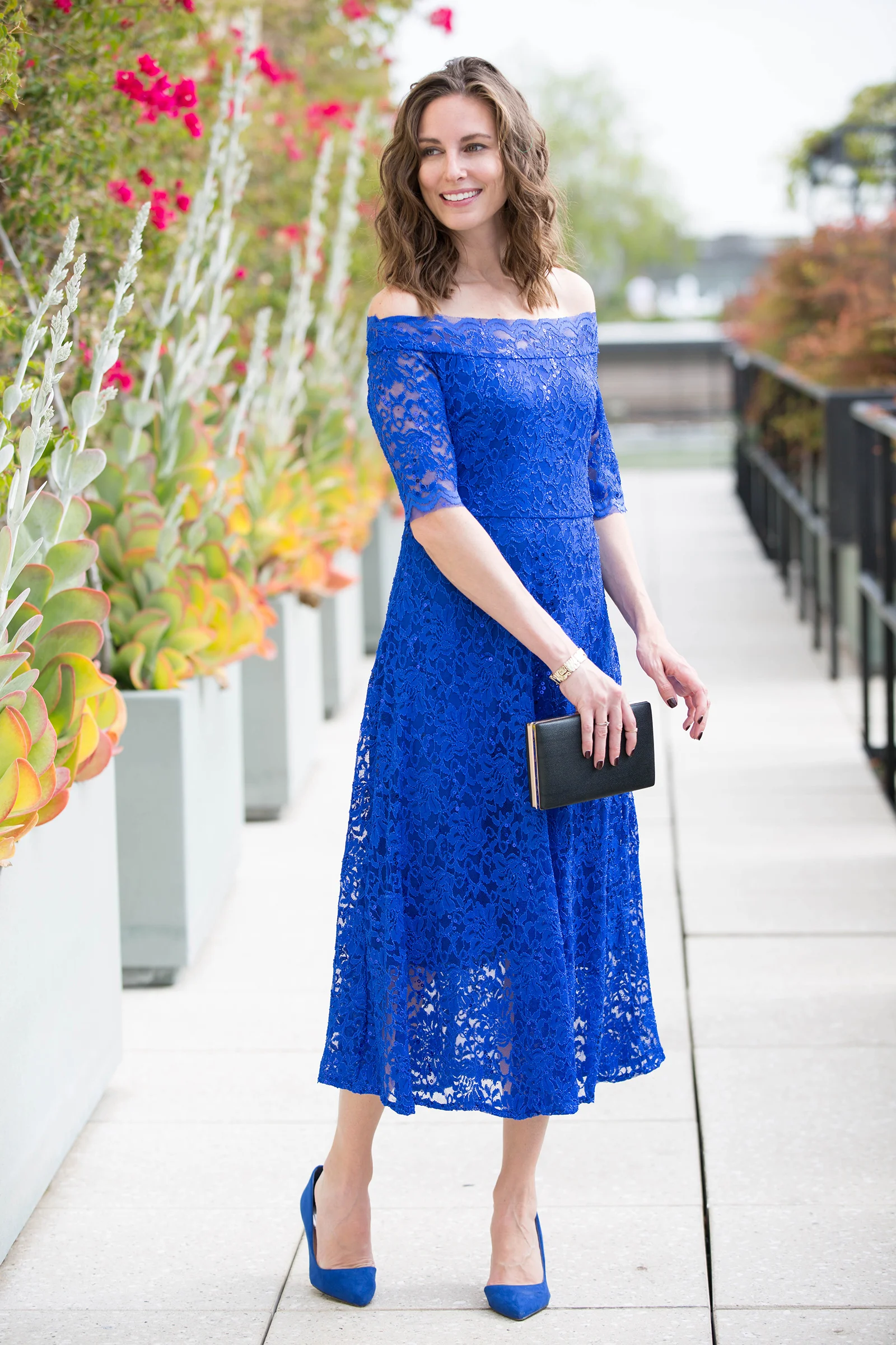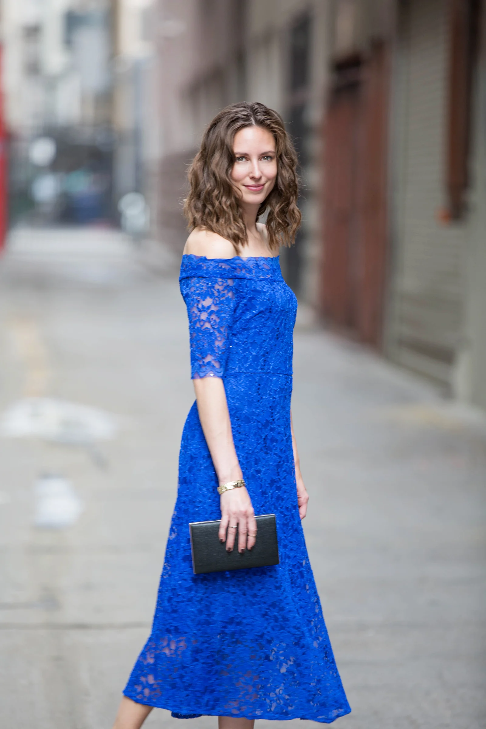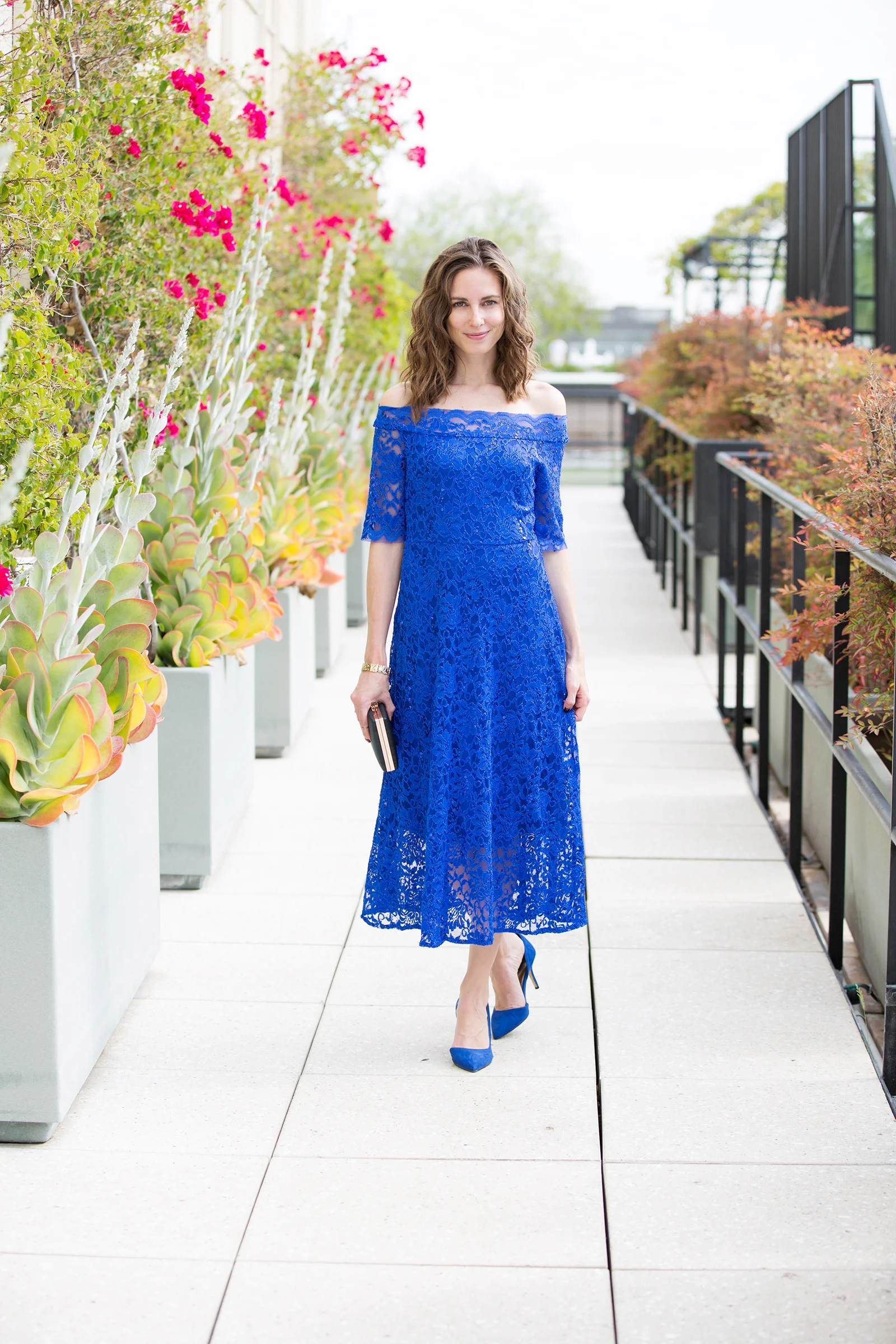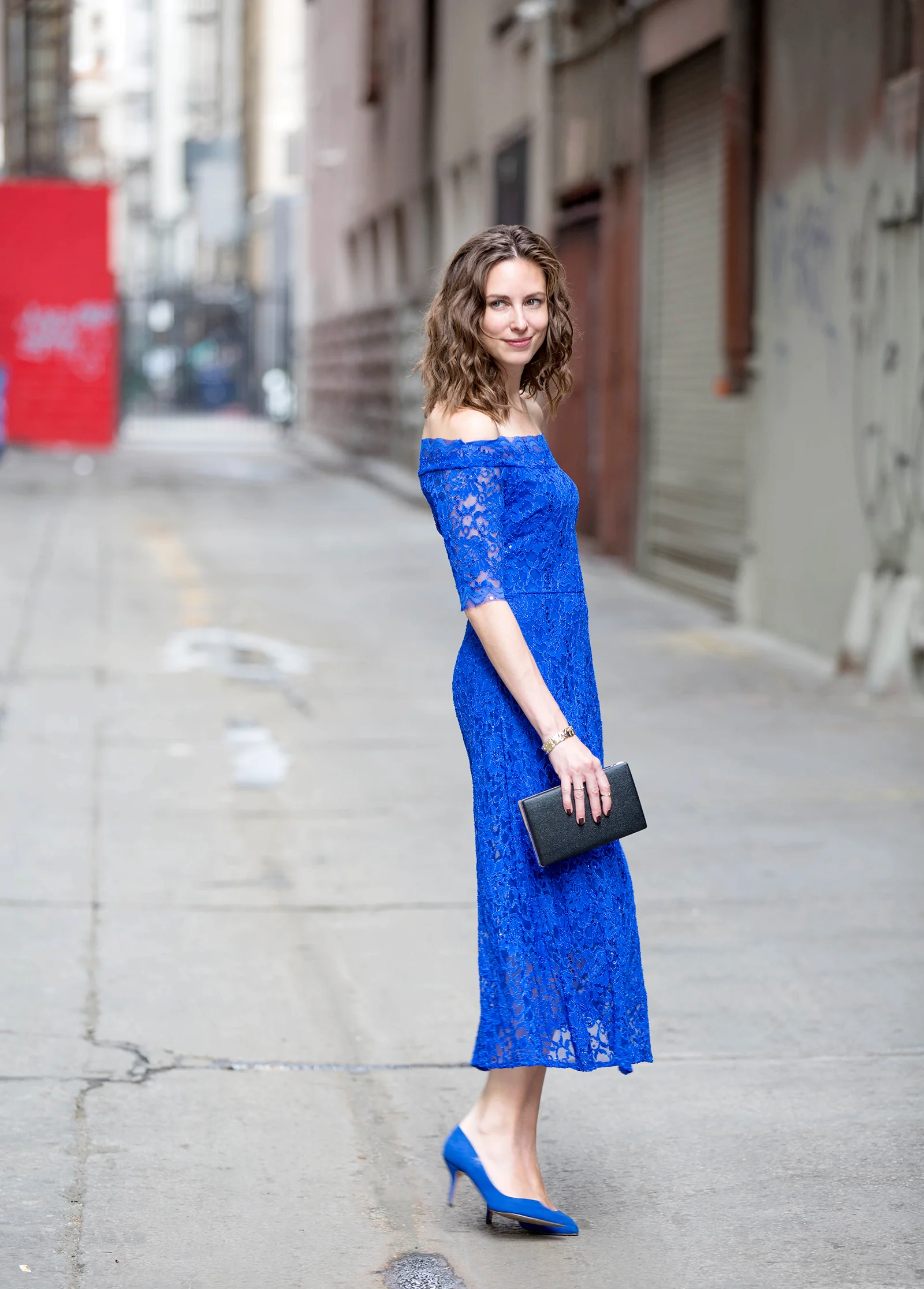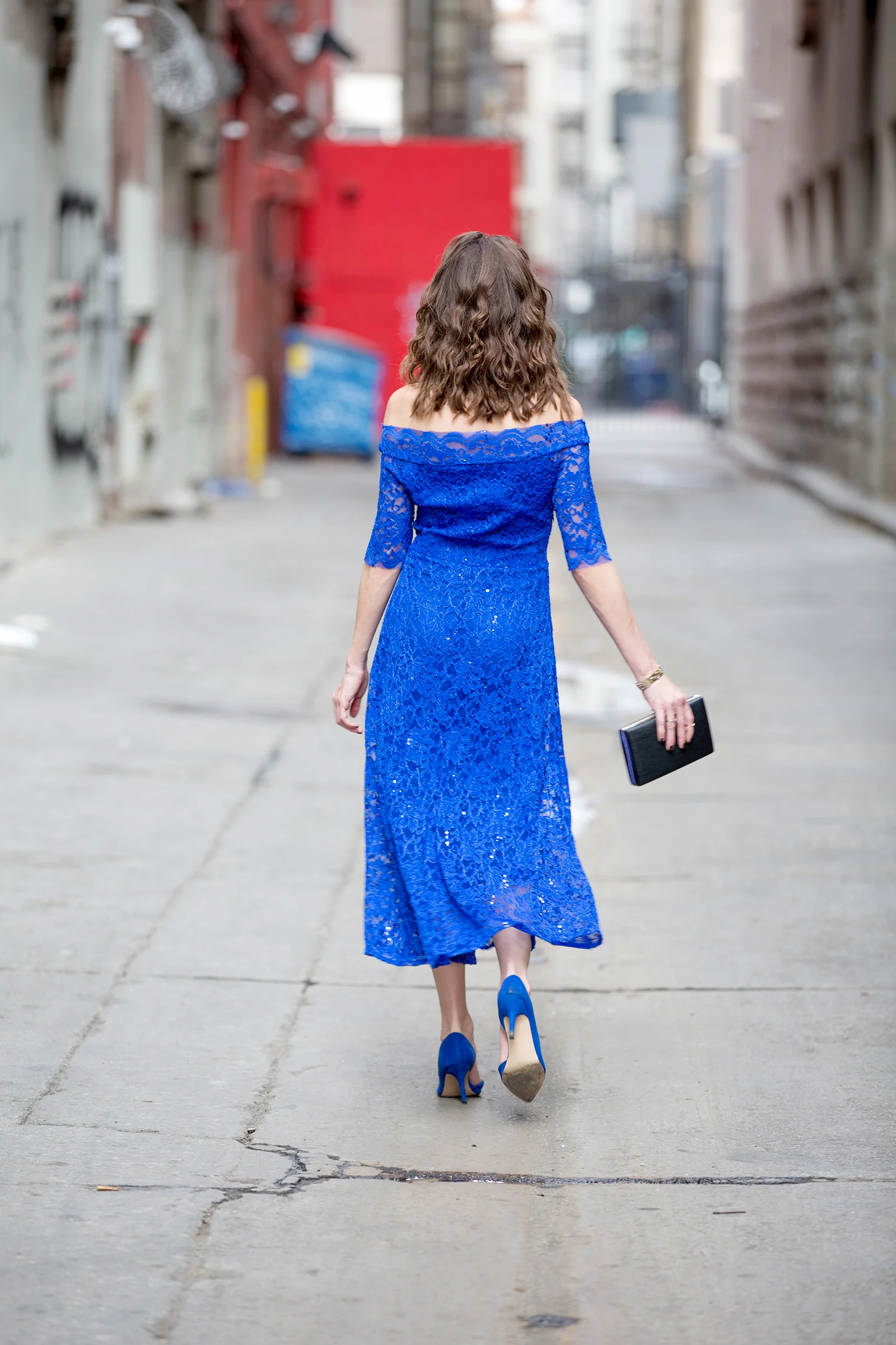 As someone who loves any excuse to wear a dress, I'm thrilled for the season ahead. While you can never go wrong with a great LBD, this season, I selected some bolder colors and intricate textures for my party lineup. This lace number from Dress Lily comes in a gorgeous blue hue and if you look close enough, you can see tiny sequin flecks running throughout. From the silhouette to the feminine details, this dress is a flattering choice for any holiday event.