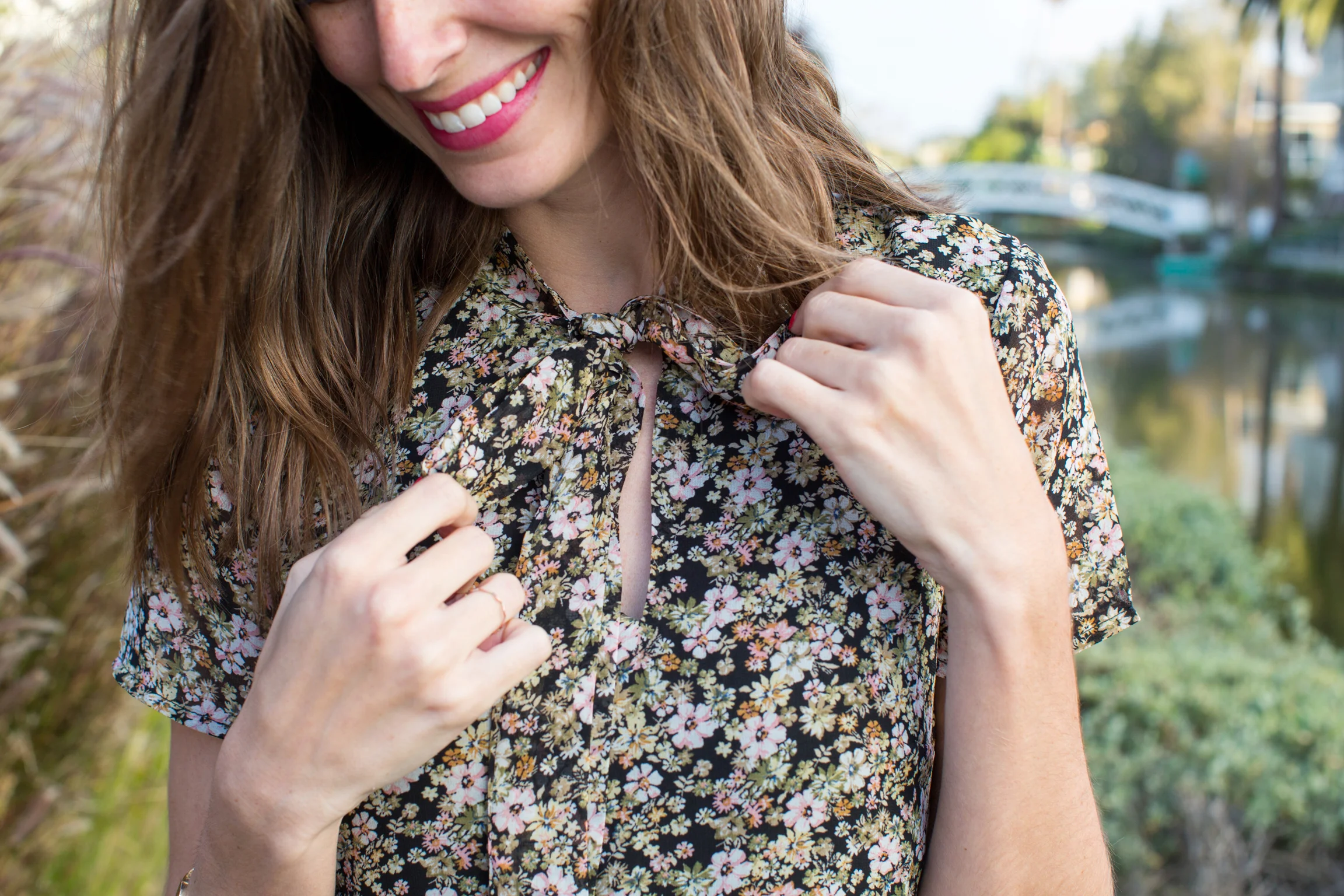 This breezy neck-tie dress is a new favorite of mine. It's effortlessly flirty and requires very little accessorizing (so my style!) And with vintage greens and burgundy hues, it puts a darker fall spin on the classic floral dress.