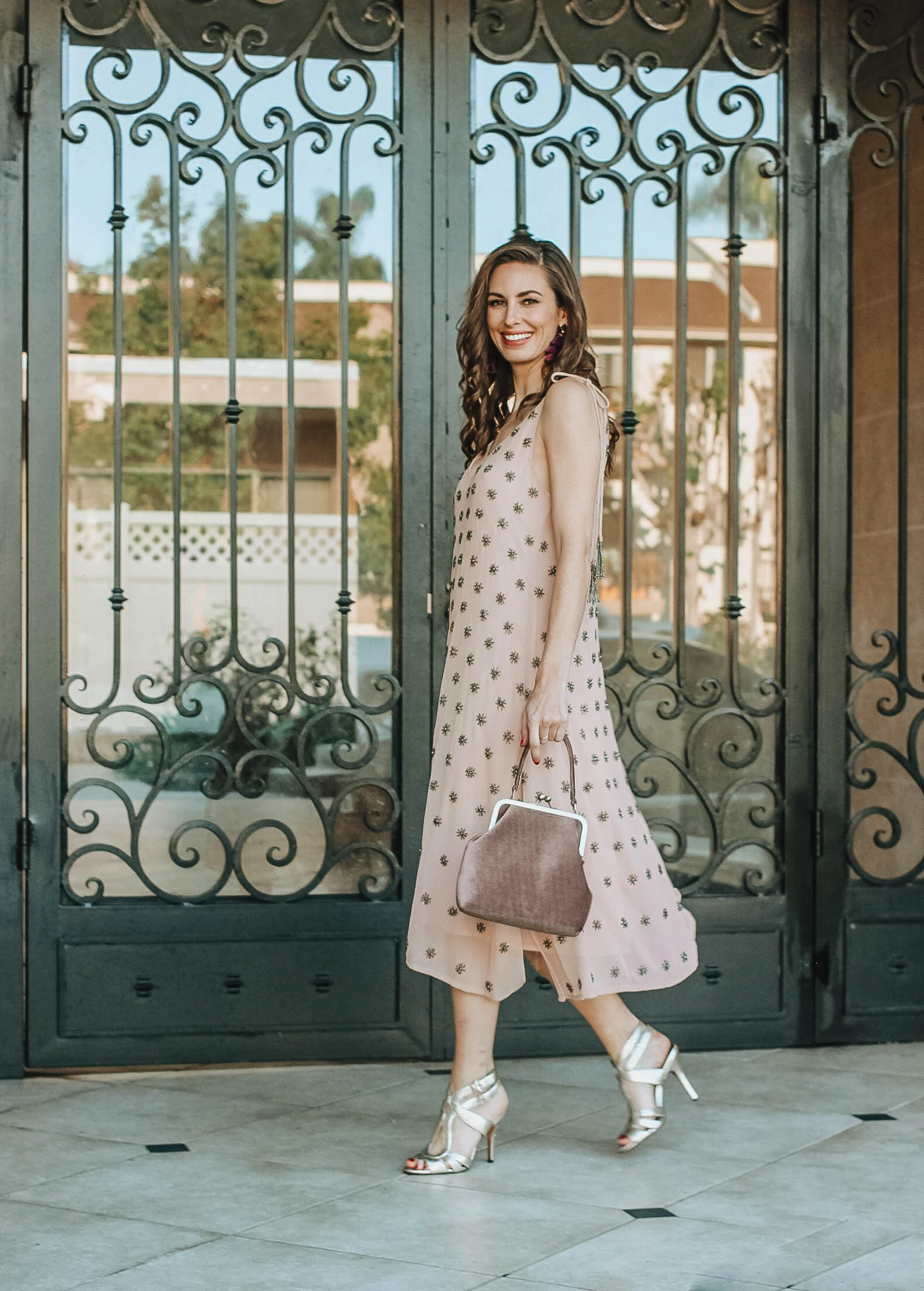 Nearly a century later, and I'm still inspired by the gorgeous styles of the 20's. Often pulling outfit ideas from the ladies of this era, I thought it would be fun to do 20's-esque holiday look this year. This pale pink slip dress was a perfect place to start. It boasts that classic flapper look with a less figure-defining shape and beautiful beading all over.