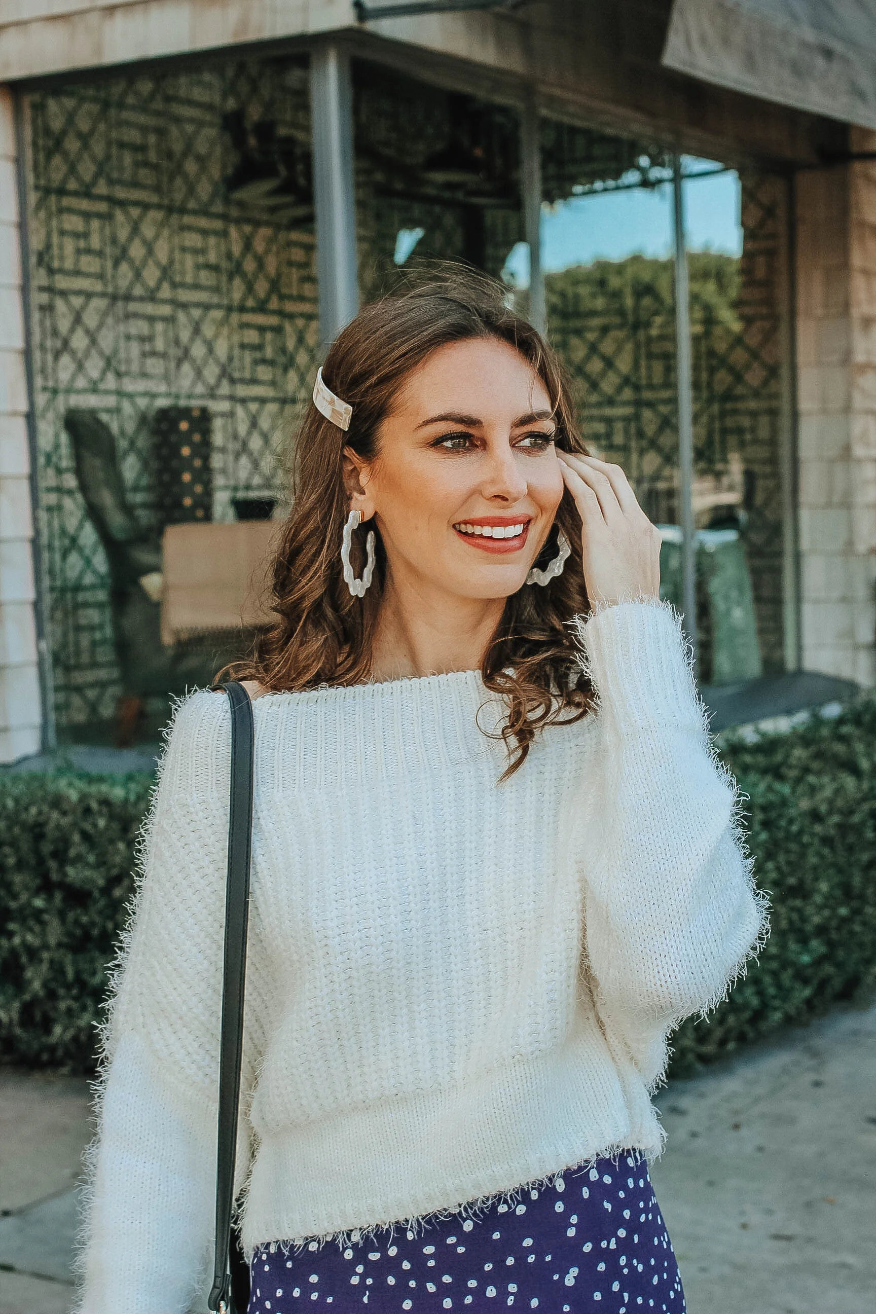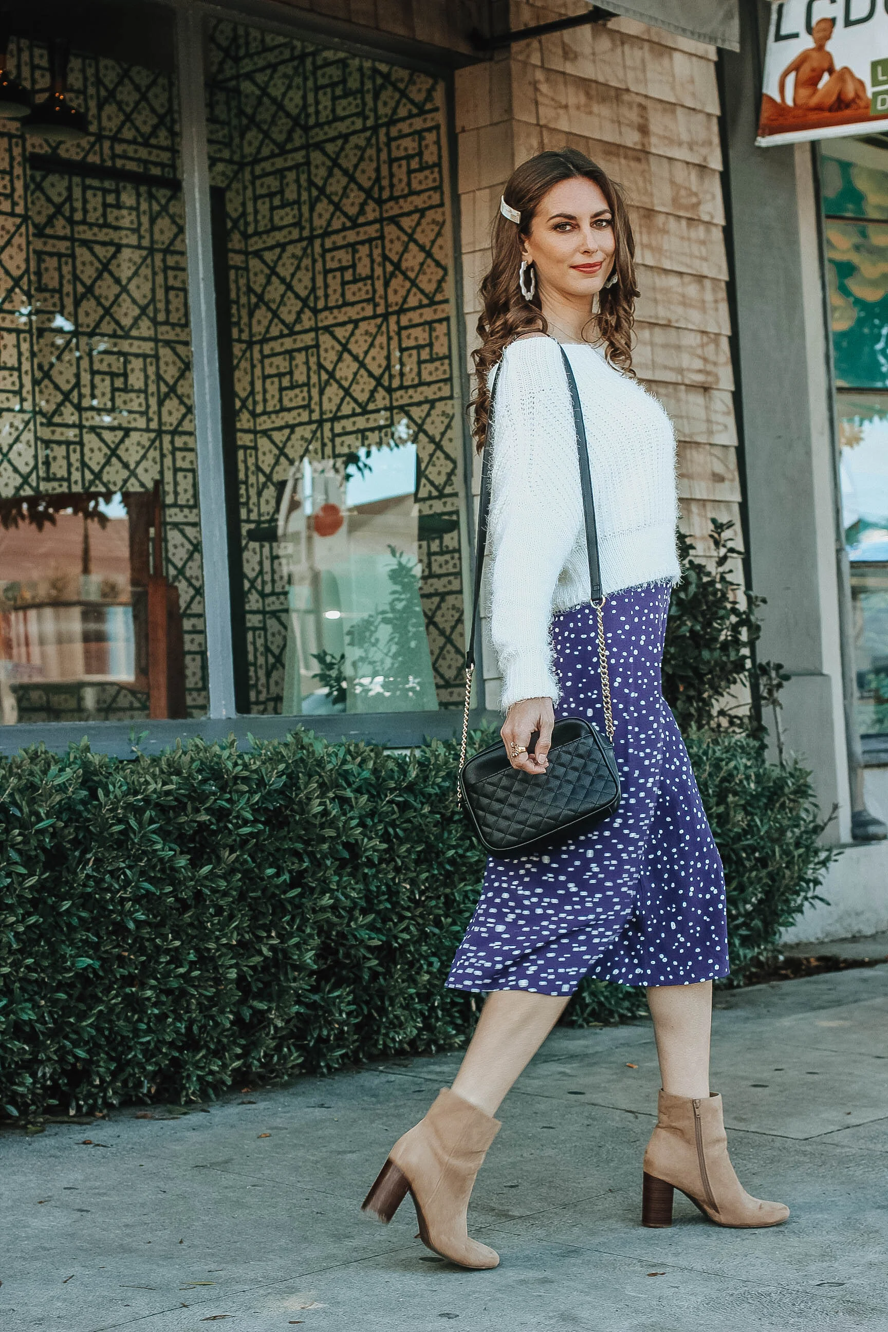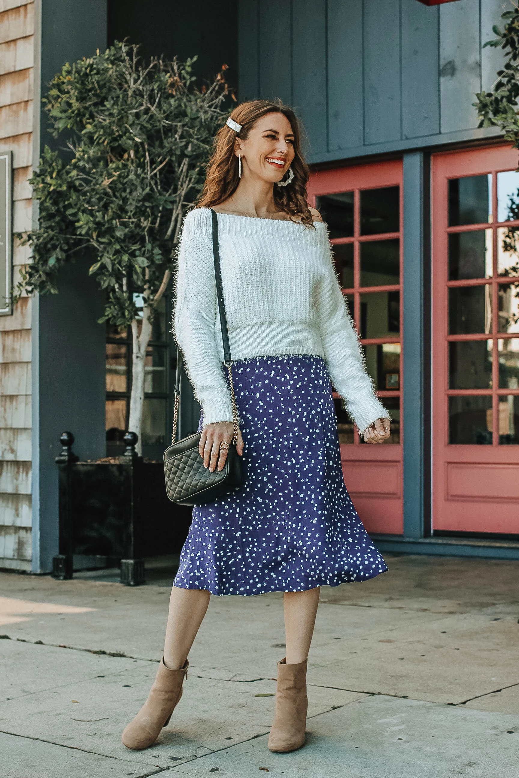 Ready to retire your winter coat? Same here. As we get closer to March, it (hopefully) means that warmer weather is on the way but at the moment, it's still chilly, drizzly, and drab outside. So how do you keep your outfit fresh while staying warm? Introduce a few new transitional pieces into your wardobe— you know, the pieces that you can wear through May. This slouchy sweater and midi skirt combo is an option that’s incredibly flattering and easy to put together. What are some of your favorite outfits to wear in this in-between-time of the year?