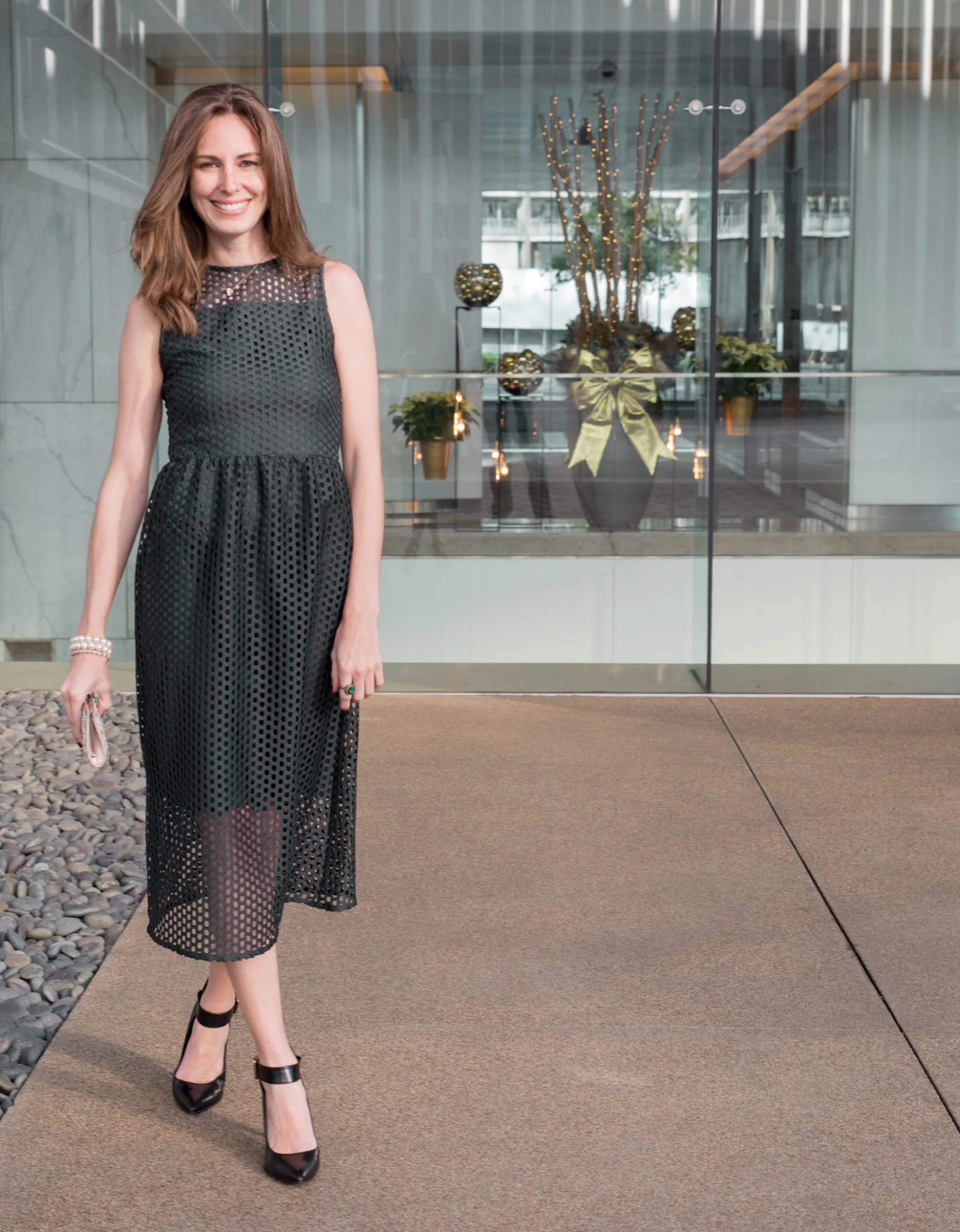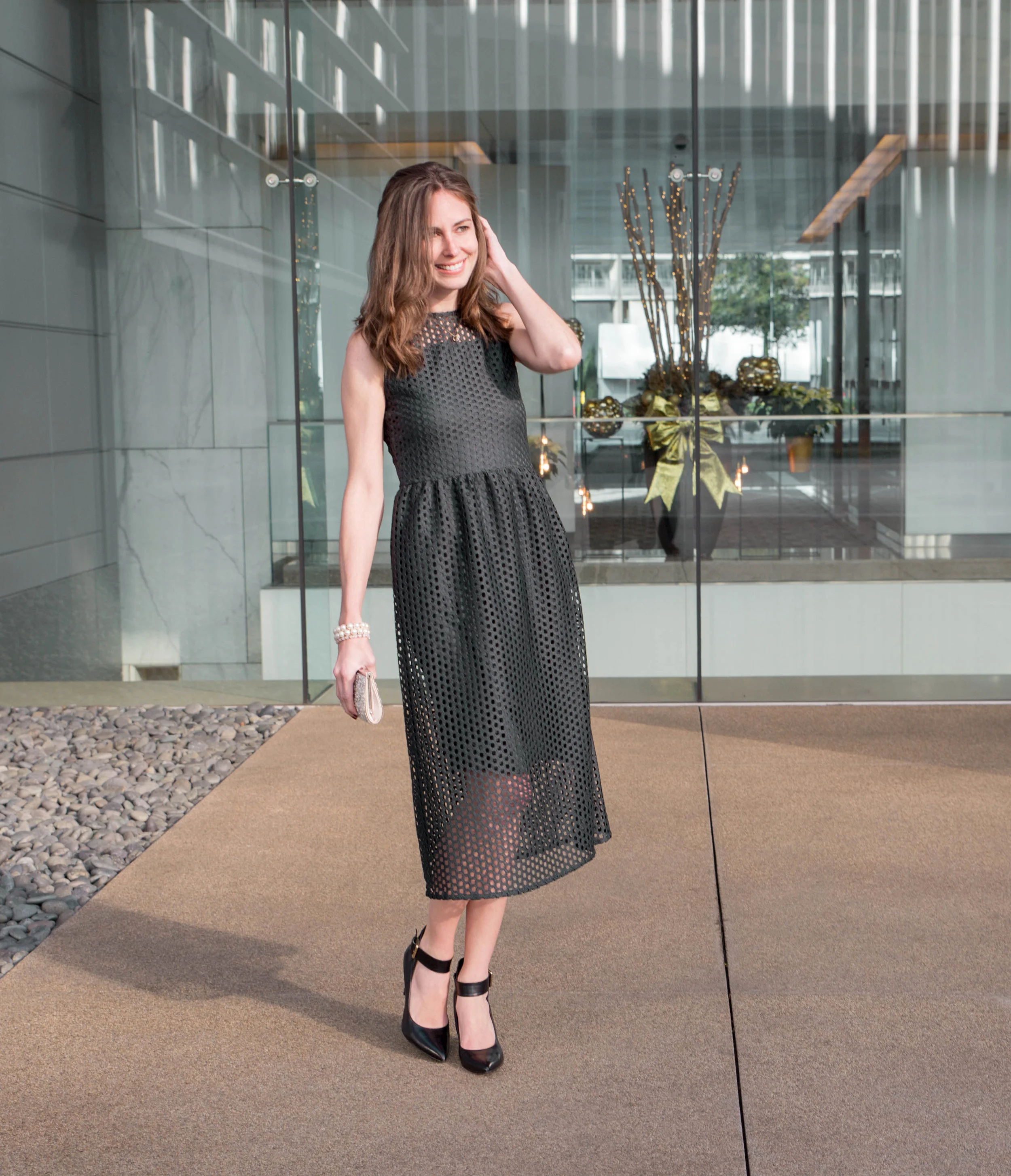 I love this evergreen midi dress that I picked up at H&M last week. It's sophisticated and the perforated fabric gives it an unexpected finish. I wore it to an event in LA this past weekend and it was just perfect.