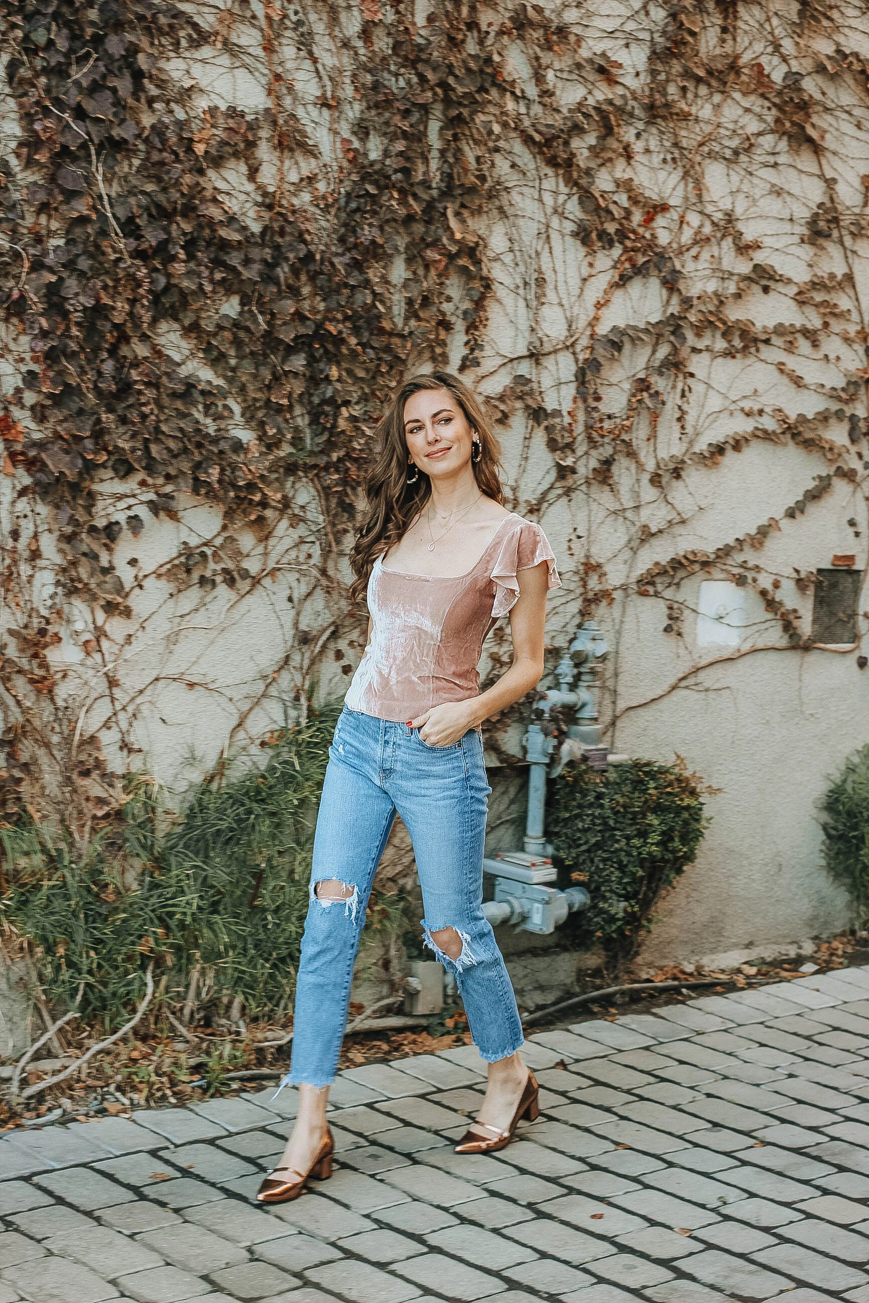 So what are some of my easy date-night looks? Honestly, I look to Reformation for all my inspo lately. From jumpsuits to sweet little dresses and tops, they have styles that are classic yet undeniably sexy. This ruffly velvet top works really well with ripped jeans and if you're going on a day-to-night event, toss on a dress like this with a cropped denim jacket and booties. Need an office-to-drinks ensemble? This jumpsuit I wore in a previous post is just perfect.