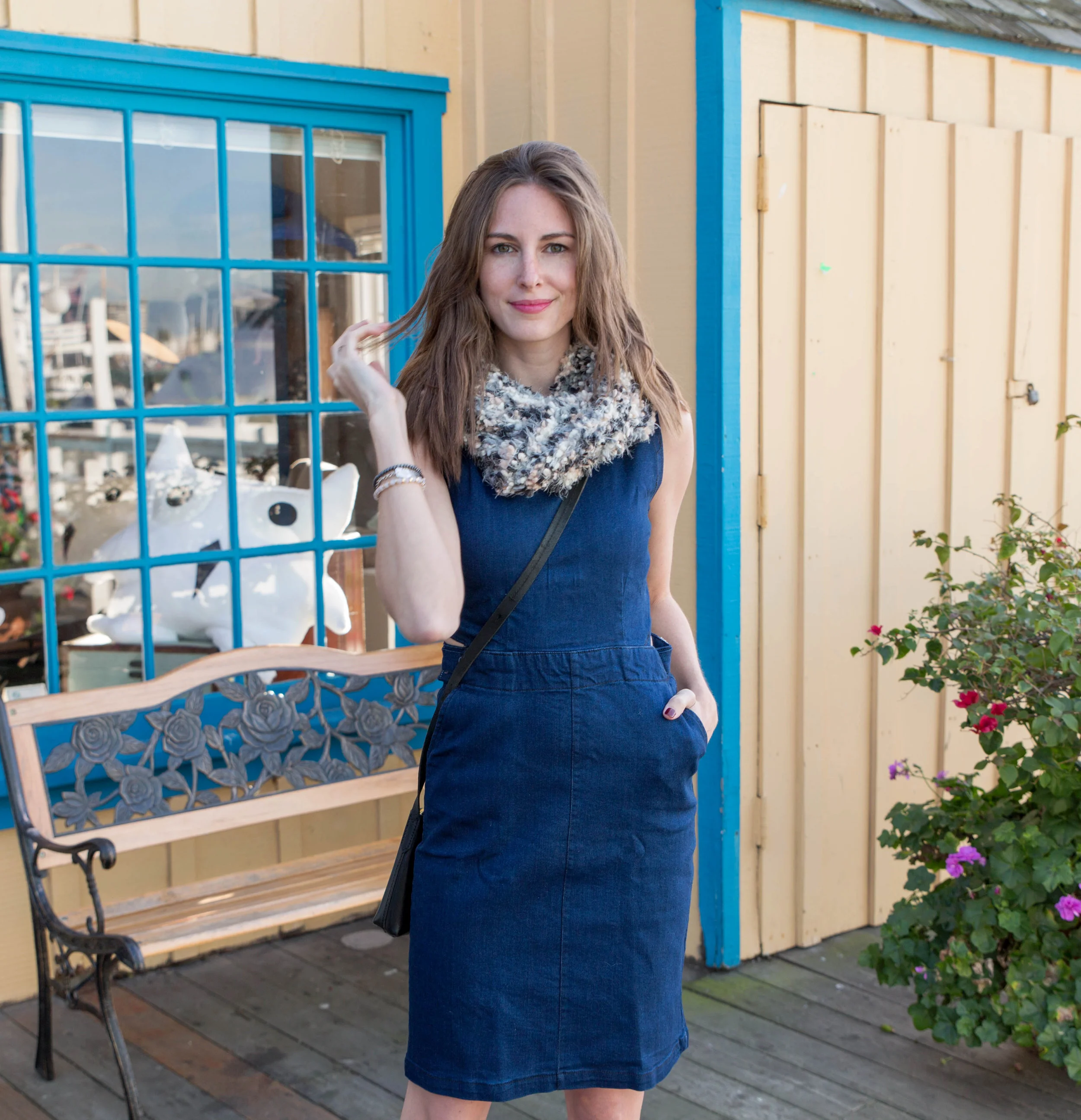 It’s also a fun number to accessorize! Try either statement earrings or a neck scarf up top and some bolder booties or pumps on the bottom.