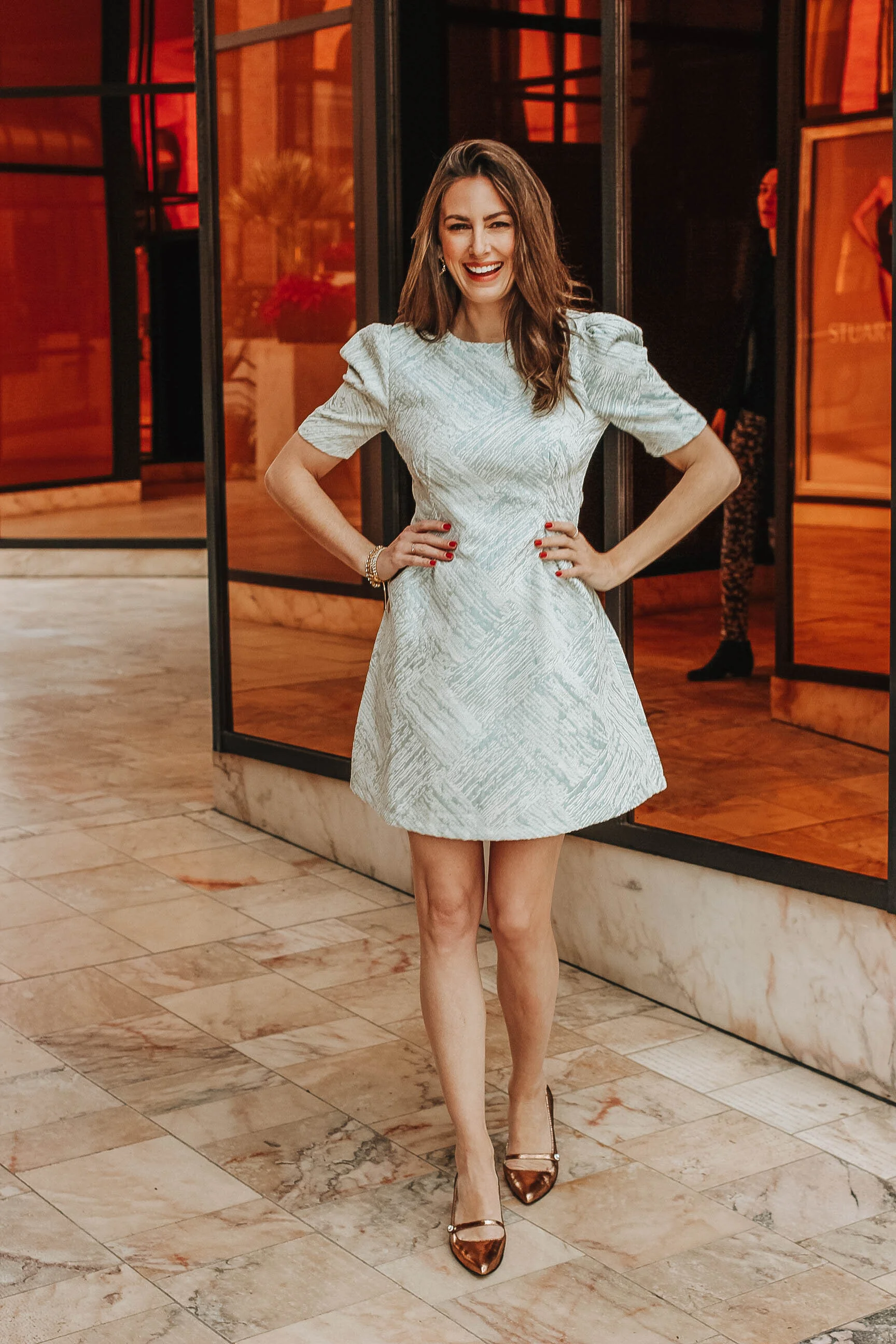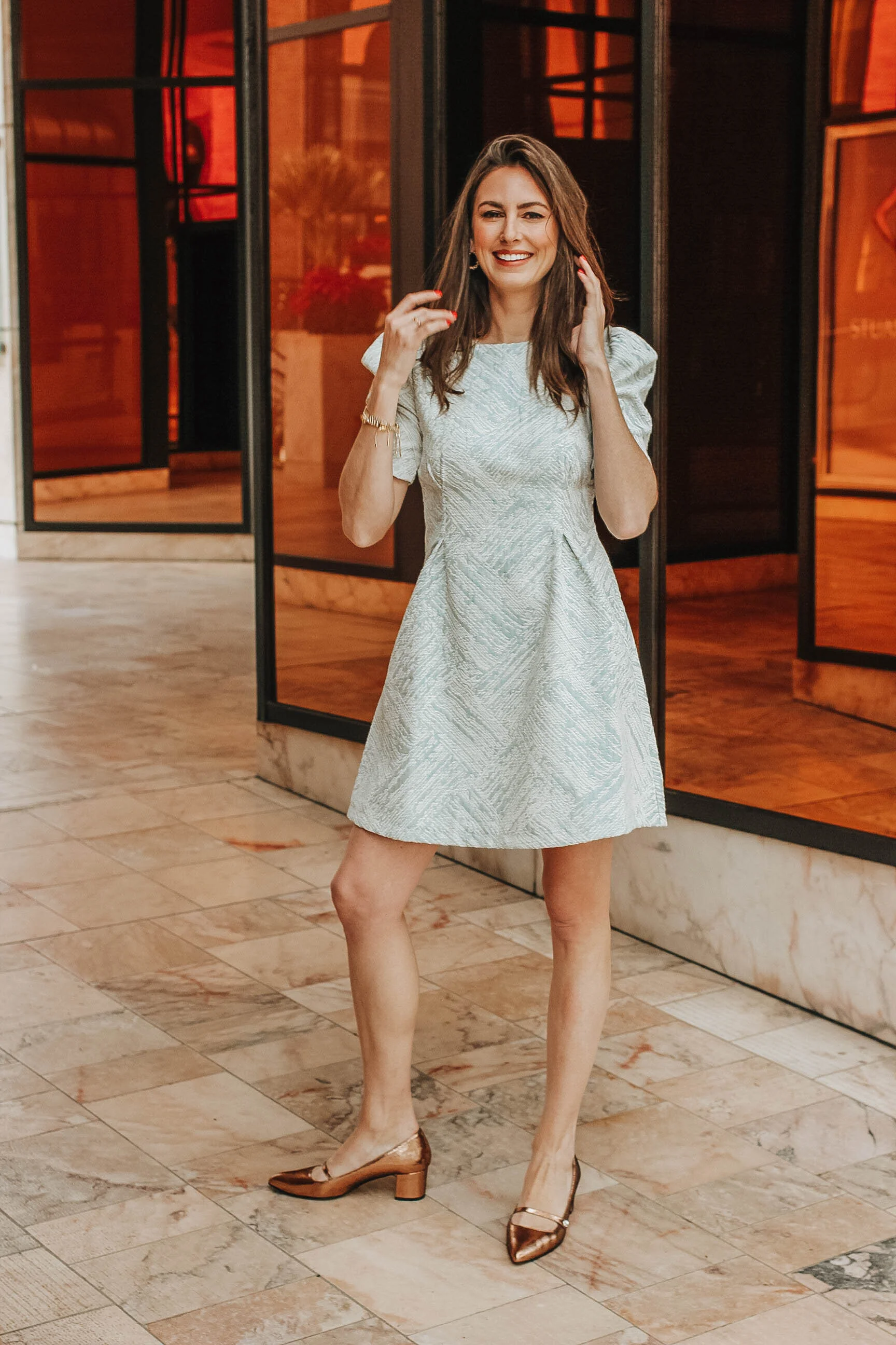 This mint mini dress from Chicwish is an easy favorite. Not overtly festive like my emerald dress from last week, this one was incredibly easy to style with simple bracelets and gold earrings. The puff sleeves are so adorable and classic. Oh and the best part? It works well as a New Years dress, too! Win, win.