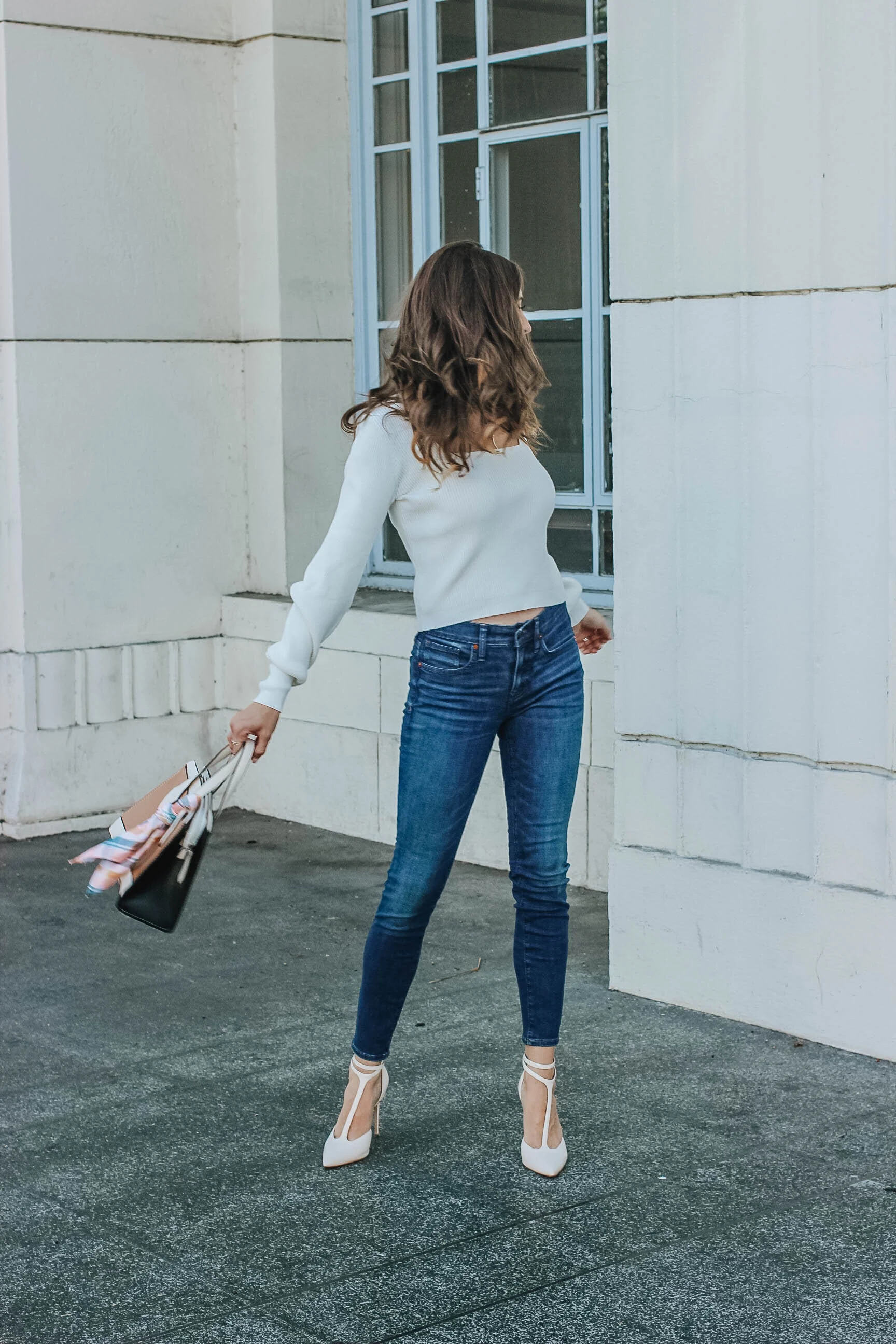No wardrobe update is as simple as a new piece of jewelry. Whether it's a graphic tee or simple pencil skirt, everything in your closet can be made to feel new again with a little extra shine. I love layering up necklaces and playing with different lengths. I also feel like you can never have too many hoops. These textured gold beauties put a nice spin on a classic style, and they're just the right size (not too big or small).